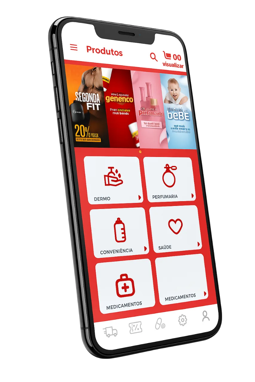 Tenha acesso a descontos exclusivos, compre seus medicamentos e produtos de perfumaria com muito mais praticidade. Tudo de forma rápida, segura e no conforto da sua casa.